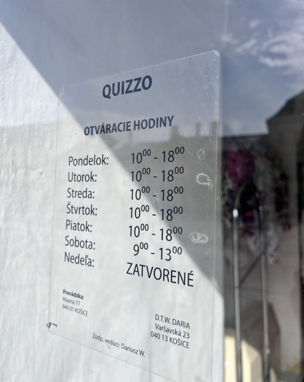 | Piatok | 10:00 | - | 18:00 | ||