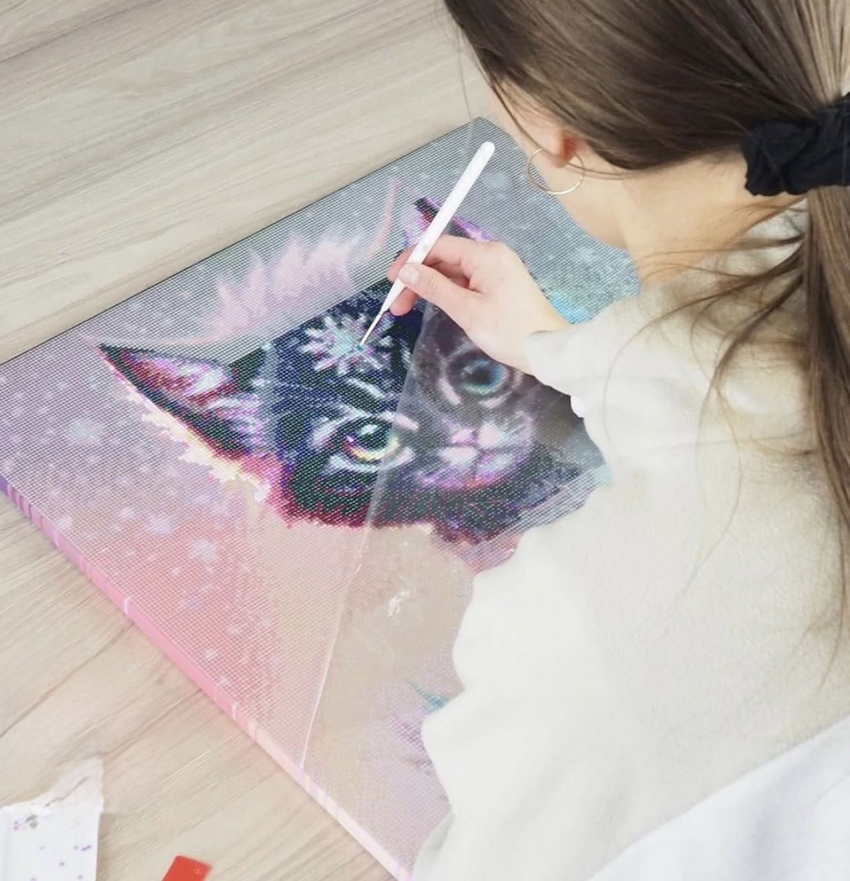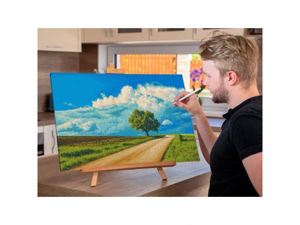• Diamantové maľovanie – tvorivý proces, pri ktorom sa na plátno nalepujú malé trblietavé kamienky podľa farebného kódu.
